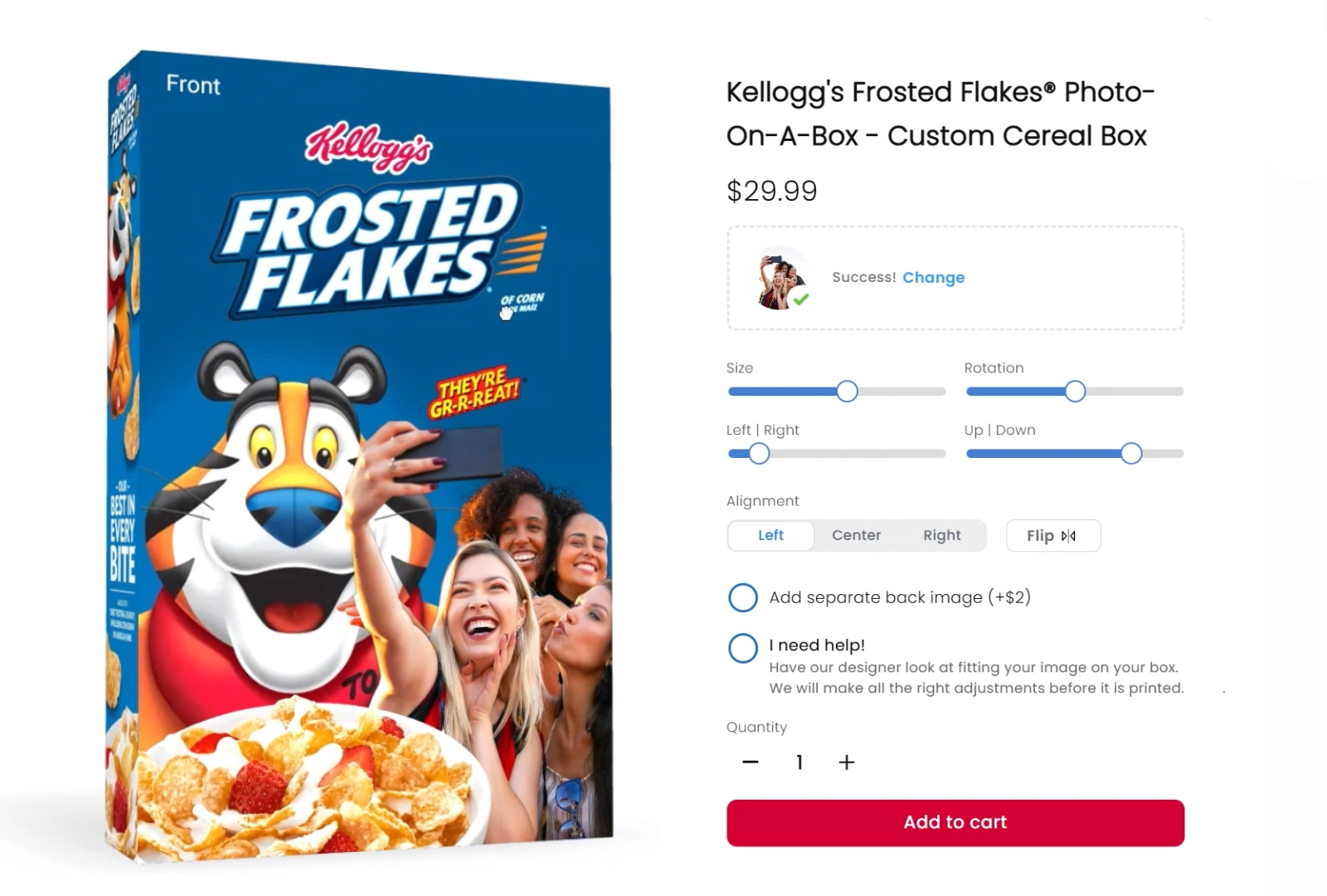 Transforming the iconic cereal box into a personalized gift. Our engine handles high-resolution image uploads, automated layout validation, and production-ready print export.